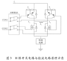 H橋開關電路主要由H橋路及其驅動電路組成,用于實現對勵磁線圈進行方波勵磁。原理示意圖如圖3所示。
