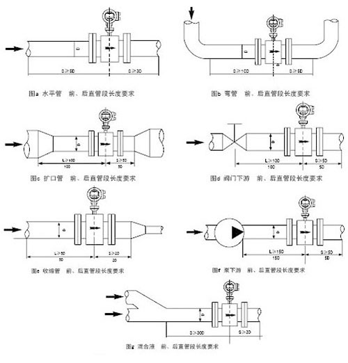 2.異徑管需滿足錐度要求。供水流量計的入口與出口的直線管段有長度要求,傳感器前后加接的異徑管,若要視為直管段的一部分,應(yīng)符合產(chǎn)品關(guān)于傳感器前后管段漸擴或漸縮的圓錐角小于15°的要求。因此這種做法必須進行異徑管中心圓錐角計算,如上述DN100供水流量計入口與出口處,依據(jù)《給水排水標(biāo)準(zhǔn)圖集》加工制作的DN150×100的異徑管,其中心圓錐角計算后為11.74°<15°。