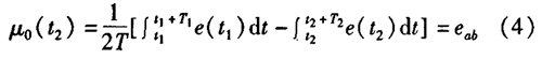 智能濃硫酸電磁流量計一般都采用工頻交流電源供電,其電源電壓的幅值和頻率的變化都會給智能濃硫酸電磁流量計帶來電源性干擾噪聲。對電源電壓的幅值變化,因采用多級集成穩壓,一般而言電源電壓的幅值變化對電磁流量的測量精度影響不大。當電源電壓的頻率波動時,雖然其波動范圍有限,但對智能濃硫酸電磁流量計測量精度影響較大。為了解決工頻干擾問題,實現對流體流速感應電勢e柚信號的準確測量,需利用以下基本關系:①勵磁周期為工頻周期的整數倍,即勵磁頻率為50/nHz(n為偶數);②正負勵磁下的同相位采樣。圖2是對應低頻矩形波勵磁形式下的典型電勢信號形式,按上述關系在一個勵磁周期下,若假設t。和t:點為工頻干擾的等效干擾點,且采樣寬度T=T1=T2,則e –ab的基本算式為:,