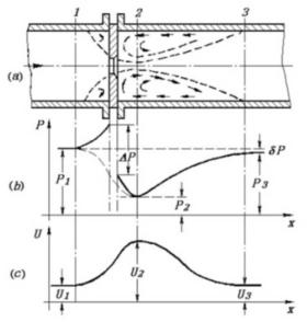 流體流經節流件時壓力和流速變化情況