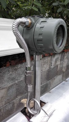 9.傳感器在有保溫層管道上的安裝。測量高溫蒸汽時,保溫層*多不能超過支架高度的三分之一。