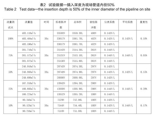 插入式煙氣流量計插入深度為現(xiàn)場管道內徑的50%時,試驗數(shù)據(jù)如下(以 DN200 為例):