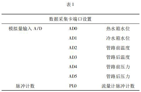 數(shù)據(jù)采集系統(tǒng)由工控機(jī)、化工污水流量計以及數(shù)據(jù)采集卡組成。 4000 次冷熱沖擊試驗(yàn)要求在在*大流量 qs 條件下運(yùn)行,對流量數(shù)據(jù)的采集用到化工污水流量計及數(shù)據(jù)采集卡。化工污水流量計采集管路流量,數(shù)據(jù)采集卡將化工污水流量計采集到的數(shù)據(jù)反饋給工控機(jī)系統(tǒng)。過程中,試驗(yàn)管路水溫以及水箱水位的采集控制也是通過數(shù)據(jù)采集卡反饋給系統(tǒng)控制。試驗(yàn)過程用到的數(shù)據(jù)采集卡采用研華生產(chǎn)的PCI - 1711。PCI - 1711 是一款多功能 PCI 總線數(shù)據(jù)采集卡,具有 16 路單端模擬量輸入功能、2 路 12位模擬量輸出功能、16 路數(shù)字輸入和 16 路數(shù)字輸出功能、計數(shù)器功能等。為保證冷熱沖擊試驗(yàn)結(jié)果的準(zhǔn)確性,嚴(yán)要求嚴(yán)格控制管路流量以及管路壓力。因此,管路設(shè)置前后管路溫度、冷熱水箱水位以及管路壓力的采集,管路流量根據(jù)化工污水流量計脈沖計數(shù)進(jìn)行采集,其數(shù)據(jù)采集卡端口設(shè)置如表 1 所示。