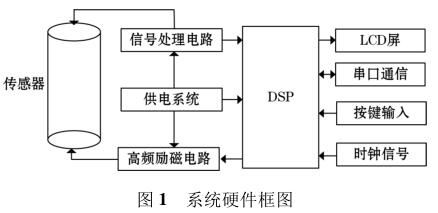 高頻勵磁防腐型電磁流量計由傳感器、高頻勵磁電路、信號處理電路等組成,其中高頻勵磁電路決定著傳感器磁場的強弱,勵磁電路的穩定性以及精確性決定著系統檢測的準確性以及穩定性。DSP 系統控制勵磁電路激勵傳感器線圈,當線圈中有導電液體流過時,其切割磁感線并在傳感器兩端的線圈上產生感應電動勢,利用信號檢測電路監測感應電動勢的大小,*后根據相應關系計算出液體的流量,系統硬件框圖如圖 1 所示。