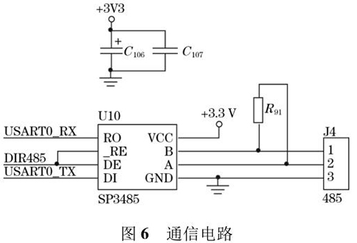 防腐型電磁流量計輸出的流量值可以通過外接的 TFTLCD 屏直接顯示,還可以通過預留的 RS485 通信接口將數據發送到上位機中。RS485 電路*大的優點是 485 電平與 TTL 電平兼容,方便與 TTL 電路相連;抗共模干擾能力強;數據傳輸速度快,高達 10 Mbps;通信距離遠,*大為 1.2 km。系統采用 SP3485 芯片進行數據通信,SP3485 是一款低功耗芯片且符合RS485 協議的收發器,電路圖如圖 6 所示。