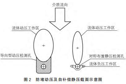 新智能分體式電磁流量計采用拋物面導向型結(jié)構(gòu)作為動壓測點,采用對稱自補償型式的靜壓測點,可以有效地解決來流方向偏流時信號的穩(wěn)定采集,來流偏離管道軸線時,可以維持輸出差壓基本不變,如圖2所示。