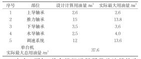 該水電廠于2013年5月至6月完成全廠4臺機組的投產(chǎn)運行。在機組檢修期間復(fù)核計算、統(tǒng)計每臺機組實際用油量如表1所示。