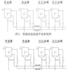 (2)改造后,單個油桶內(nèi)透平油的過濾和轉(zhuǎn)移工作中需操作的閥門減少(僅需操作2個支管上小通徑的閥門),極大地簡化操作流程。改造前,每個油桶的油必須流入油處理室中的機組透平油供油和回油總管上,才能再次經(jīng)支管閥門進入相應(yīng)油桶,好少要操作四個閥門(包括總管上臨時接口的大通徑閥門)。