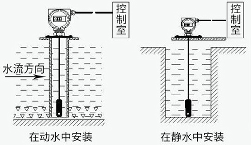 投入式靜壓液位計(靜壓式水位計)通常投入直徑大于水位計直徑的的PVC管、鋼管,管道固定在水中,不同高度打若干小孔,以便水通暢進入管內(nèi)?;蛘咴诘撞考友b阻尼裝置,以過濾泥沙和消除動態(tài)壓力和波浪對測量的影響。