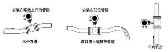 選擇充滿液體的直管段,如管路的垂直段(流向由下向上為宜)或充滿液體的水平管道(整個管路中*低處為宜),在安裝與測量過程中,不得出現非滿管情況。