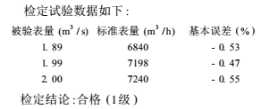 現(xiàn)以其中1臺開封儀表廠生產(chǎn)的口徑1600mm的0.5級電磁流量計為例,分析超聲波流量計的檢定方法及其優(yōu)缺點。