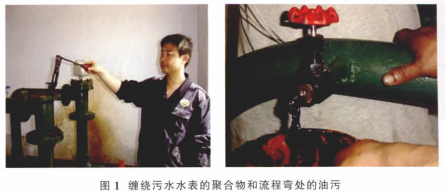 單井的注水量低,更造成污水中的油污和雜質(zhì)的沉降,附著在水表表體的表而和管匯彎道處(見圖1)。